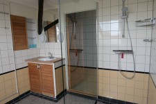 - Badkamer met wastafel, toilet en inloopdouche met thermostaatkraan en badmat.