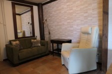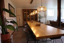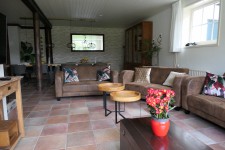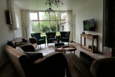 - Riante woon- eetkamer met ruime zithoek. Grote eettafel met comfortabele stoelen. Comforthoek met tweezitter en elektrische bedienbare relaxstoel.
